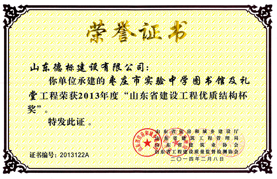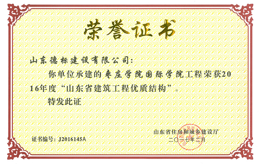 2016年度山東省建筑工程優(yōu)質結構-棗莊學院國際學院