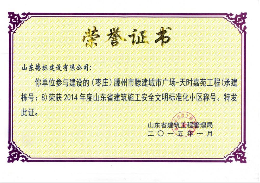 2014年度山東省安全文明標準化小區(qū)-天時嘉苑工程
