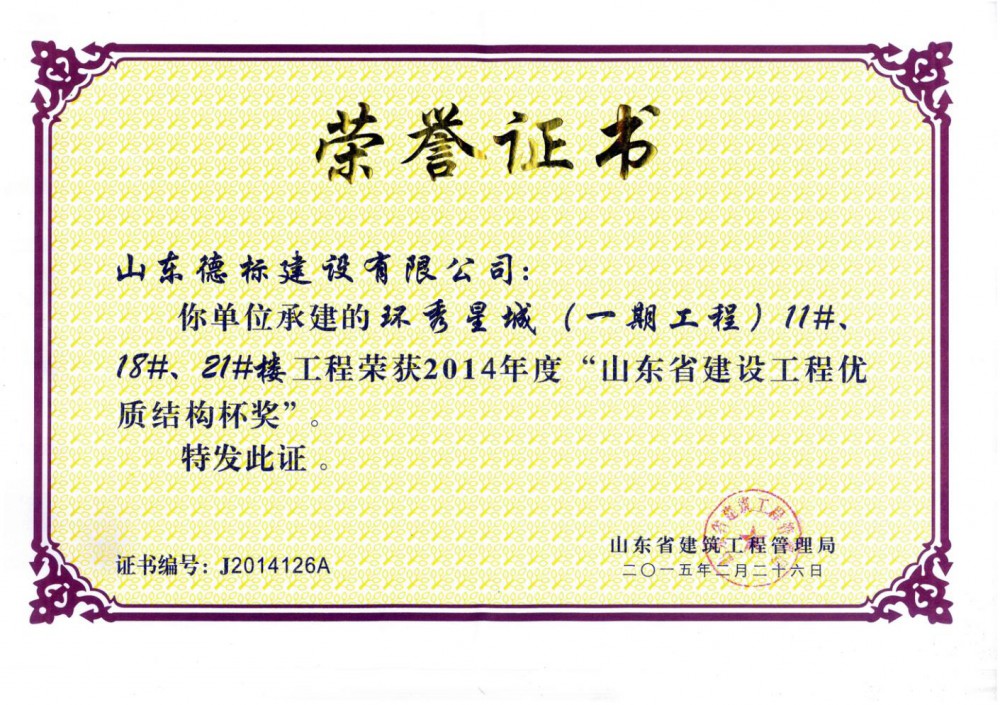 2014年度山東省優(yōu)質結構杯-環(huán)秀星城一期工程11#、1···