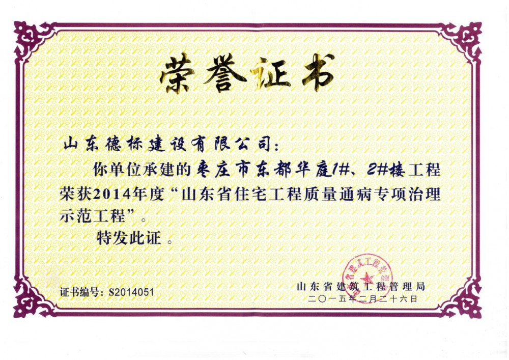 2014年度山東省質量通病專項治理示范工程-東都華庭1#···