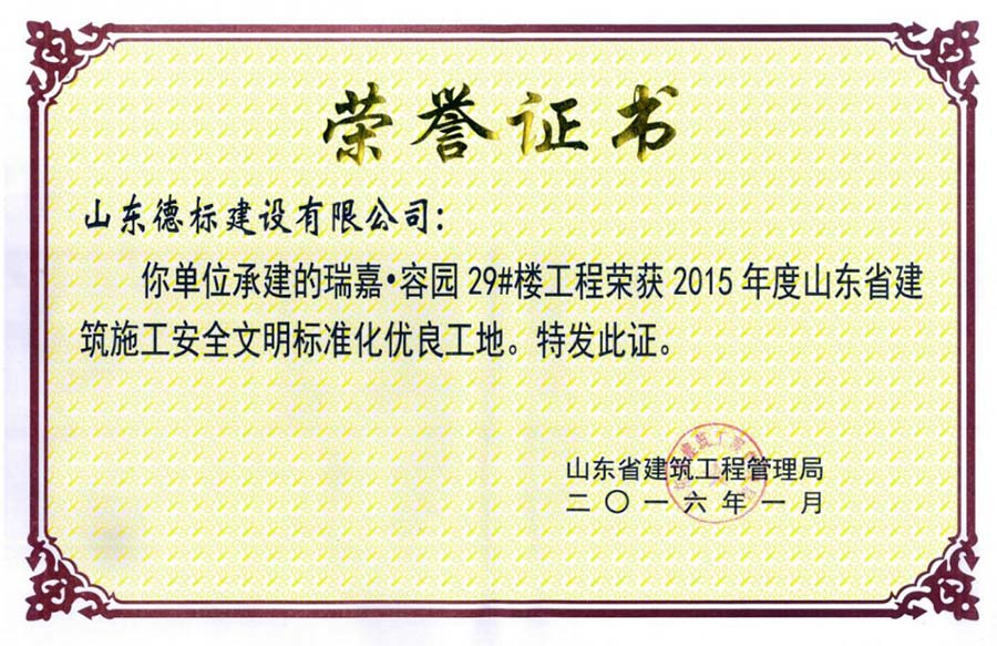 2015年度山東省建筑施工安全文明標準化優(yōu)良工地-瑞嘉容···