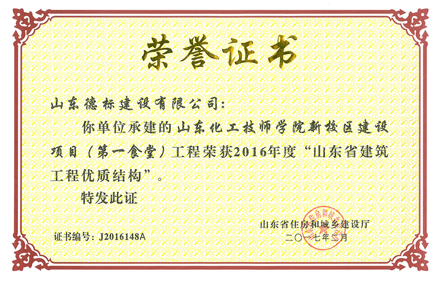 2016年度山東省建筑工程優(yōu)質結構-山東化工技師學院第一···