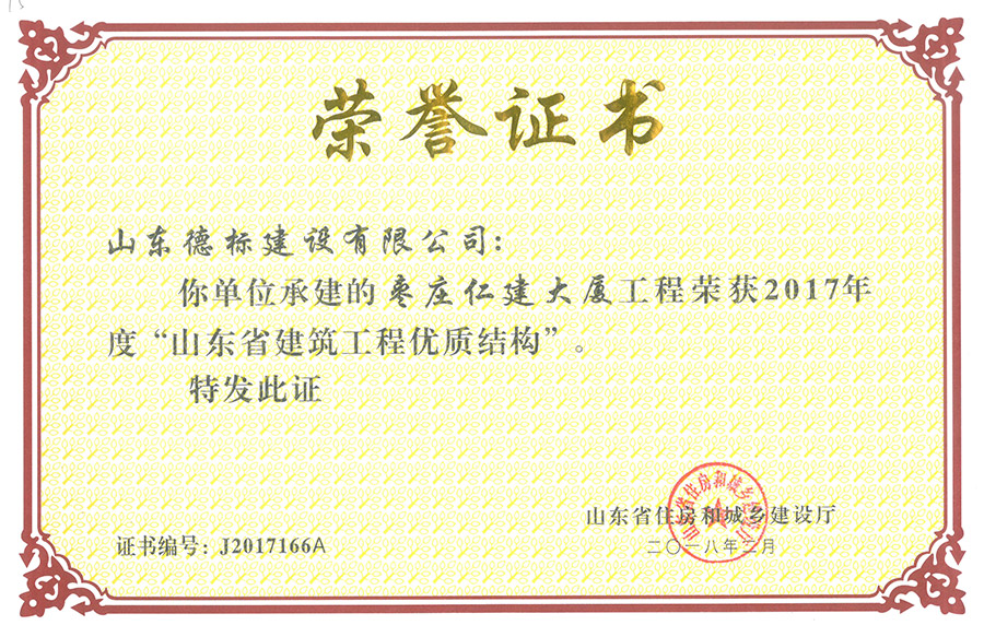 2017年度山東省建筑工程優(yōu)質結構-仁建大廈工程