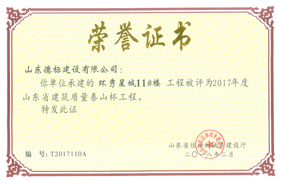 2017年度山東省建筑質量泰山杯-環(huán)秀星城11#樓
