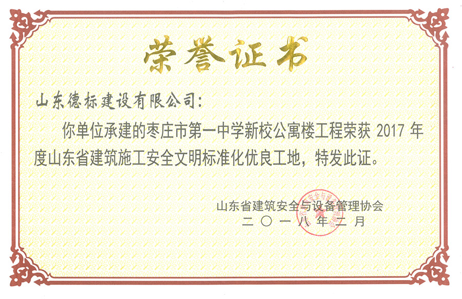 2017年度山東省建筑施工安全文明標準化優(yōu)良工地-棗莊市···