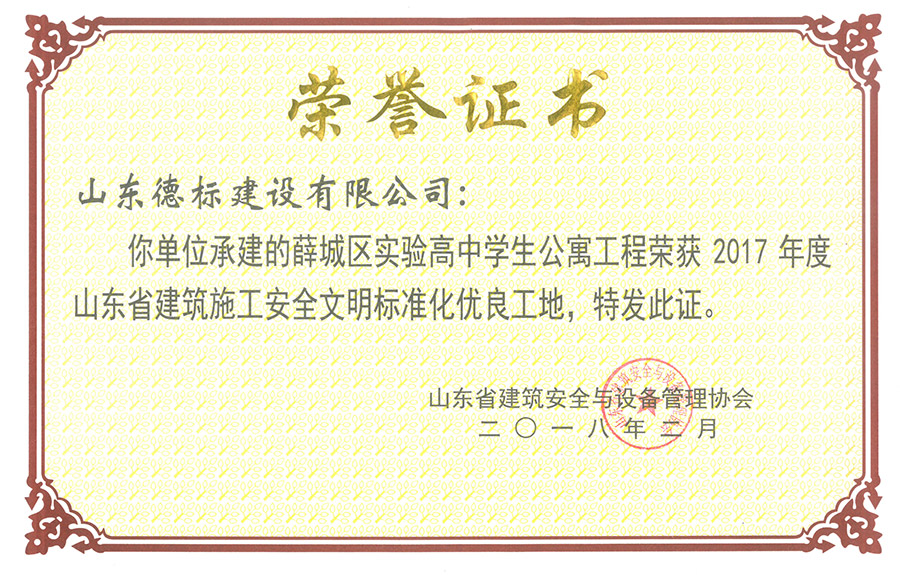 2017年度山東省建筑施工安全文明標準化優(yōu)良工地-薛城區(qū)···